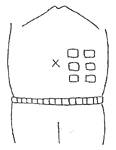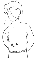 日常生活に支障のない位置で見やすく、扱いやすい位置にストーマができる様に、印をつけておきます。 |