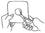 (2)パウチの裾をきれいに拭き、クリップを止めます。